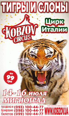 14-16, Мирноград, район рынка «Светлый»! Напомним, что в мае цирк «Кобзов» посетил с гастролями Покровск. Для тех, кто не успел увидеть незабываемо зрелище настоящего, европейского цирка или хочет еще раз окунуться в атмосферу Италии – приглашаем посетить шоу в Мирнограде.