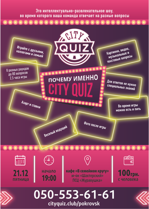 Следите за новостями в ФБ: https://www.facebook.com/quizpokrovsk/
