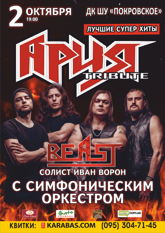«BEAST» – первый и единственный трибьют-бенд на просторах СНГ, которому удается максимально точно передавать всю мощь живых выступлений АРИИ. Мощи, объёма и красоты исполняемой музыке придаст эстрадно- симфонический оркестр под управлением Игоря Знатокова.