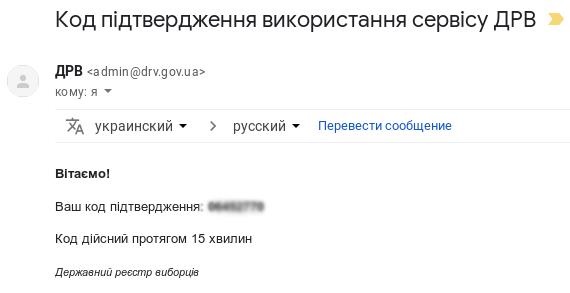 2. На указанный в поле e-mail прийдет письмо от ДРВ ([email protected]), в котором будет указан восьмизначный код подтверждения.