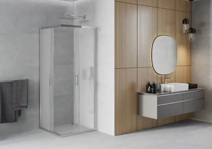 Вибираючи матеріали стінок і піддону, звертайте увагу на їхню якість та стійкість до вологи. Скло має бути загартованим (не менше 4 мм завтовшки), а поверхня піддона не слизькою.