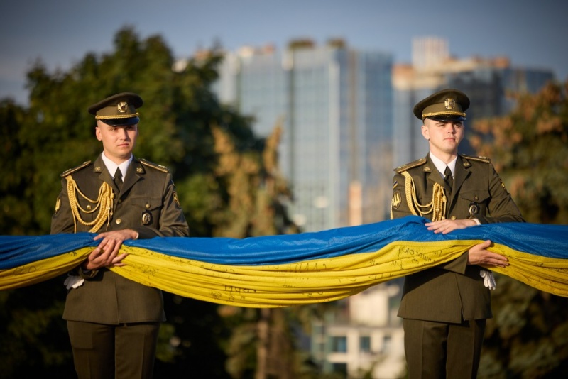 Зеленський додав, що наш прапор - це наша пам'ять, а також шана до усіх наших героїв різних часів, які захищали нашу землю та віддали своє життя за Україну та всіх українців. Він зазначив, що ми завжди будемо пам'ятати наших героїв.