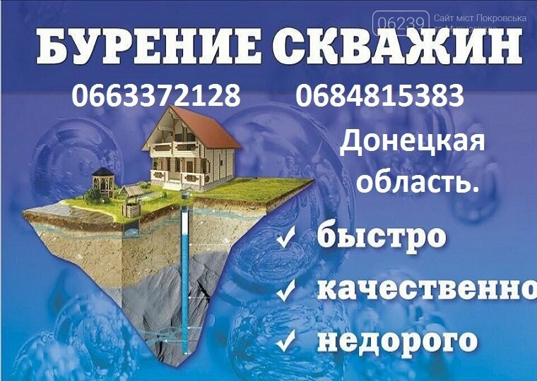 Бурение скважин по Донецкой области, а именно Краматорск, Константиновка, Покровск, Курахово, Доброполье, Александровка, Дружковка, Славянск, Лиман и их раены!
